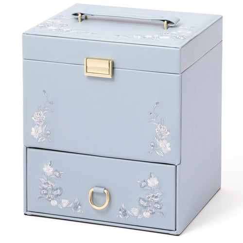 Embroidery Flower Cosmetic Box Blue